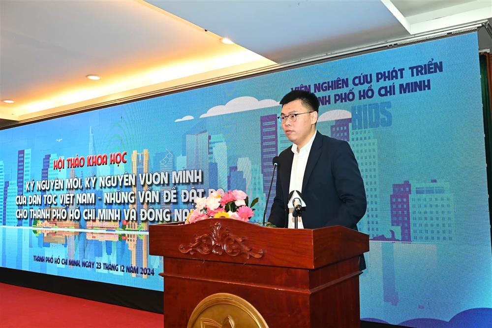 Chủ tịch UBND TPHCM Phan Văn Mãi khẳng định, thành phố luôn đặt mình trong vùng Đông Nam bộ, vùng kinh tế trọng điểm phía Nam và luôn mong muốn hợp tác với các địa phương, lực lượng, nguồn lực để thực hiện mục tiêu, sứ mạng này. Quang cảnh hội thảo. Ngày 23-12, Hội